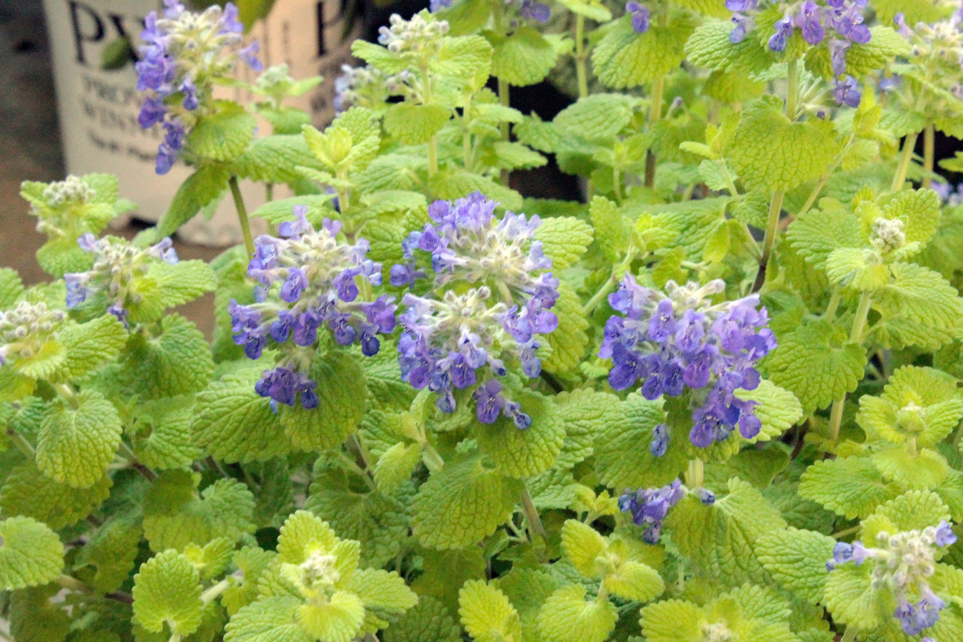 For those who like chartreuse foliage on their nepetas, there is ‘Lemon Purrfection’, which boasts purple flowers and bright green foliage.