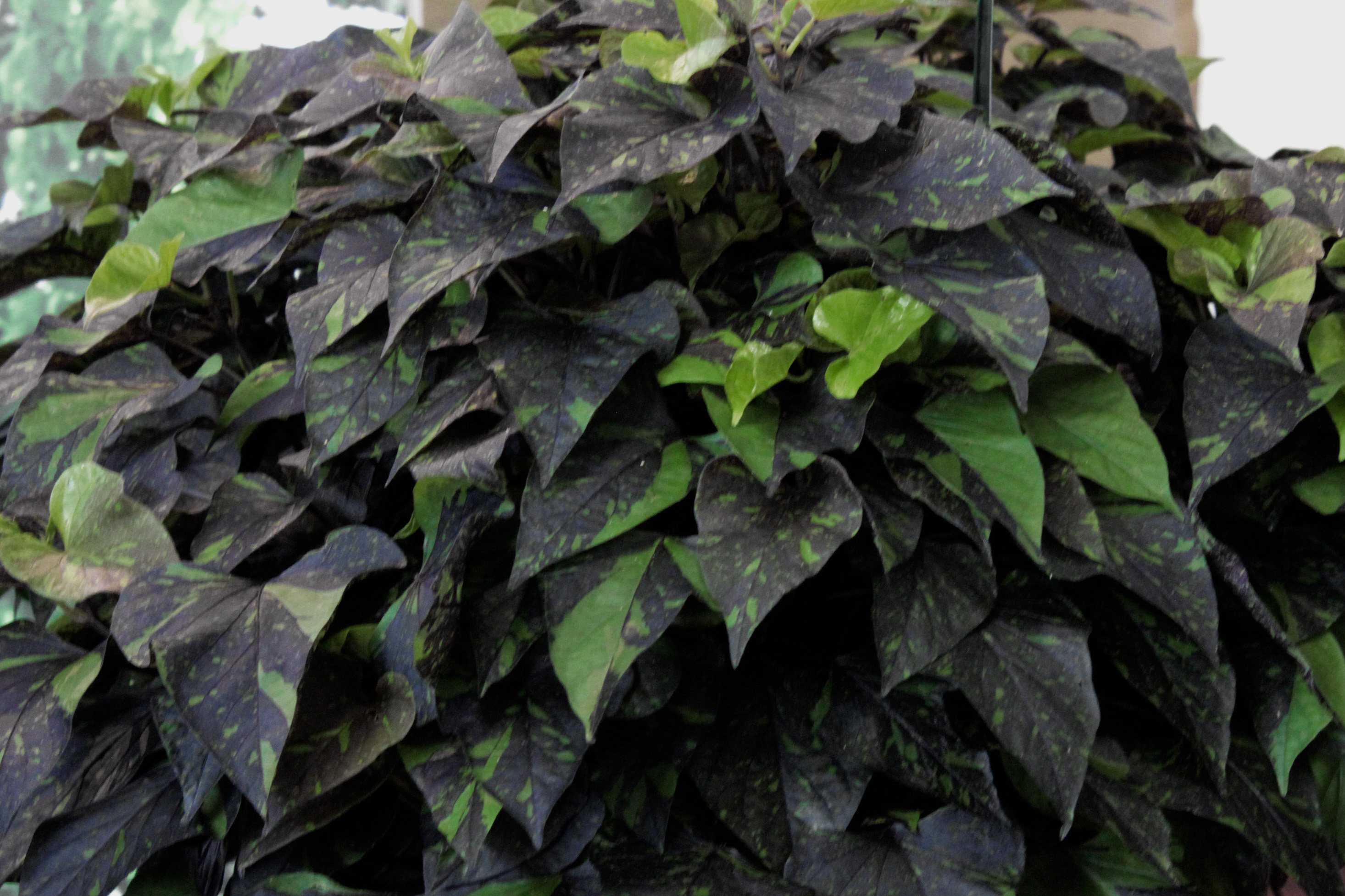 ‘Silver River’ Didelta carnosa has a coral-like shape and is velvety to the touch. Sweet Caroline Sweetheart ‘Shadowstorm’ Ipomoea has a variegated, camouflage-like appearance with heart-shaped leaves and a more compact, tidier habit (with very minimal PGRs) than what’s traditionally expected from an ipomoea.