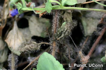 Pictured: By controlling the amount and time of watering, providing adequate plant spacing and using heating and venting to reduce greenhouse humidity, problems with Botrytis can be minimized.