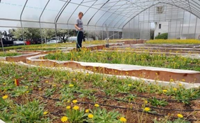 OARDC crop scientists and engineers have been developing a commercially viable crop and an effective way to extract rubber from the plant’s fleshy roots, which can contain 15% or more of the sticky latex. The better-performing plants are being grown in greenhouses, high tunnels and a 2-acre field on the Wooster campus. Plans are underway for developing larger plantations and a pilot-scale processing facility.