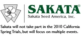 Sakata, a 96-year old breeder of ornamentals, including the SunPatiens series, Majestic Giants pansies, Profusion zinnias and Festival gerberas, is changing its approach to marketing trials. Sakata will not take part in the 2010 California Spring Trials, but will focus on multiple events at venues in North America, the Netherlands and Japan.