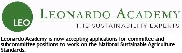 Leonardo Academy is accepting applications for 5 vacant seats on the Nat’l. Sustainable Agriculture Standards Committee in the stakeholder categories: producer (1); user (2), environmentalist (1) and general interest (1). Individuals participating across the entire ag supply chain, including growers, industry organizations, distributors, retailers, etc., who are interested in engaging in a national dialogue on sustainable agriculture are encouraged to submit an application. Individuals who previously submitted applications for committee membership will automatically be placed in the pool of applicants for the current openings. Applications must be received by Dec. 28, 2009. New committee members will be announced on Jan. 18, 2010.