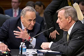 Photo: Senate Judiciary Committee members Sen. Chuck Schumer, D-N.Y., left, and Sen. Richard Durbin, D-Ill., confer on Capitol Hill in Washington, Monday, May 20, 2013, as the committee assembled to work on a landmark immigration bill. (U.S. News & World Report)