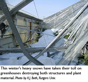 The heavy snows which are blanketing much of the eastern half of the country are taking their toll on greenhouse structures. Growers are reporting damage caused by the weight of the heavy snows, including damage to the glazing and structural supports.