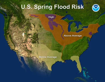 Spring flooding is underway over portions of the United States and National Oceanic and Atmospheric Administration forecasters are warning the worst is yet to come. Almost half the country, from the North Central U.S. through the Midwest and the Northeast, has an above-average risk of flooding over the next few weeks, according to the annual spring outlook released by NOAA’s National Weather Service.