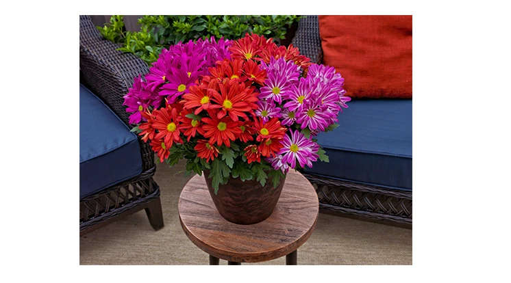 - Nikki family of garden mums – Available in yellow, orange and dark pink, the Nikki family is new for 2017 and makes a classic tricolor combination that has shown tolerance to late-season frost.