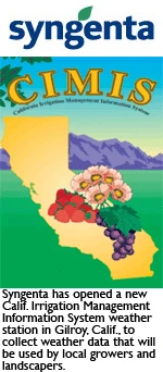 Syngenta, in partnership with the Calif. Dept. of Water Resources and the Santa Clara Valley Water District, has opened a new Calif. Irrigation Management Information System (CIMIS) station. The station will provide weather data to the public via the CIMIS Web site. The station, located in Gilroy, Calif., provides accurate water usage data for area crops. This data helps the local landscaping and ag communities conduct drought research and manage crop irrigation.