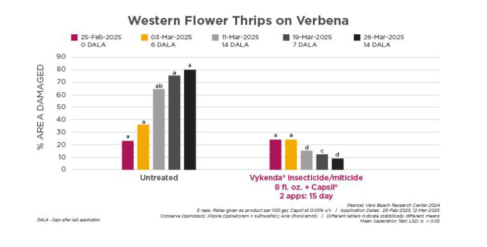 “When Vykenda is rotated with Mainspring GNL insecticide, growers have a complete solution to control the larvae and adult stages of nearly all common insects and keep populations from building,” said Nancy Rechcigl, technical services manager for ornamentals at Syngenta. “We take pride that our ongoing investment in research and development has yielded such a strong solution for growers to control insects while also defending against resistance.”