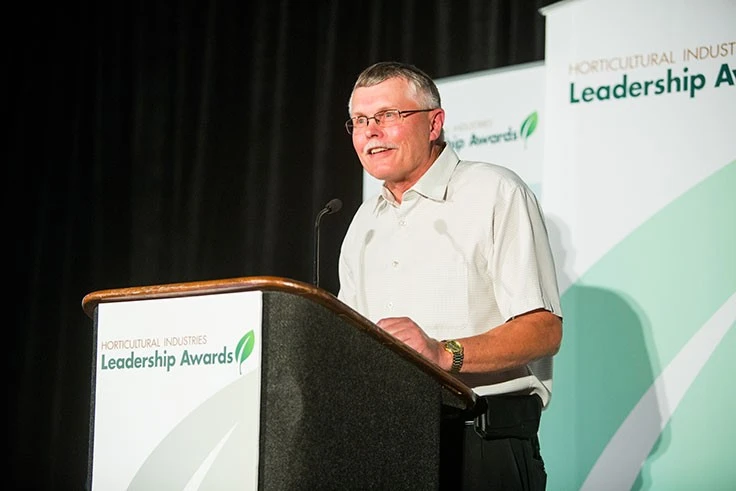 Photo by Kimberly Rottmayer: Demaline receiving a Horticultural Industries Leadership Award in 2017. Read more about Demaline's accomplishments here.
