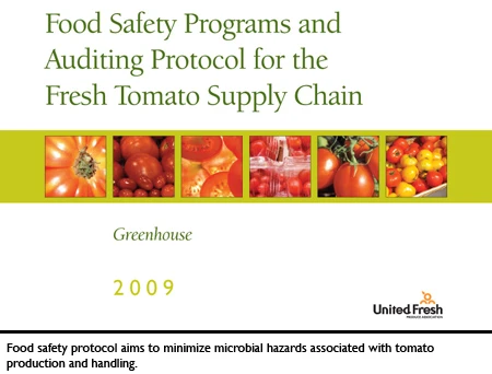 United Fresh Produce Assoc. has released the Food Safety Programs and Auditing Protocol for the Fresh Tomato Supply Chain, 2009. The food safety protocol identifies policies and practices that the fresh tomato industry expects its facilities to have in place to minimize the microbiological hazards associated with fresh and fresh-cut tomato production and handling.