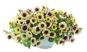 A colorful addition to the Cascadias petunia hybrida series, Cascadias 'Autumn Mystery' blooms in varied flowers. The first blossoms are yellow with a brown center, and as the flowers mature shades turn to cream with a purple center. Danziger showcased this new variety at the 2014 California Spring Trials.