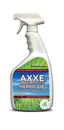AXXE Weed & Grass Control is a non-selective herbicidal soap for organic gardening. It eradicates grasses and weeds on patios, walkways and driveways. It also works for spot treatments. The soap is biodegradable and will not migrate through soil to harm surrounding plants. It can be used on weeds and grasses such as chickweed, liverwort, crabgrass, dandelion, ragweed and more. The product is available in a 32-oz. ready-to-spray, 32.-oz tip-n-pour concentrate, and 1-gallon concentrate.