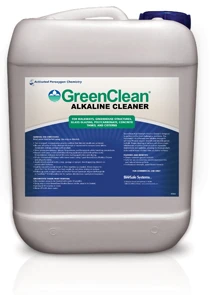 BioSafe Systems has introduced GreenClean Alkaline Cleaner. The cleaner lifts away organic deposits and emulsify grease and oils. GreenClean Alkaline Cleaner is effective against most water or oil saturated soils. GreenClean Alkaline Cleaner can be used for general cleaning of floors, walkways, vertical surfaces, equipment, tools, machinery, and other hard surfaces.