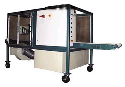 Bouldin & Lawson's Pro Line Trimming System automates uniformed trimming of trays, flats and pots. A variable speed conveyor carries materials through specialty trimming blades. The blades are also variable speed and can be adjusted from 18 inches high down to any desired height. A custom vacuum system is used to gather and store loose clippings in a 10 cubic foot storage container. The system provides updraft air to clear trimmings. It trims trays and flats up to 20 inches wide and 1- to 3-gallon pots. It is equipped with a variable speed conveyor, cutter and vacuum. Optional misting and blade sterilization systems are available.