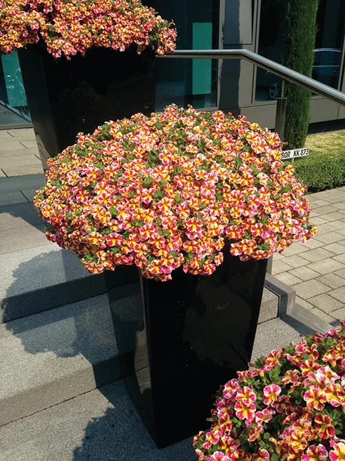 Calibrachoa Candy Bouquet from Vivero Internacional is an early-flowering variety shines out of the crowed with its fluorescent magenta accents crossed with sunny yellow starbursts.