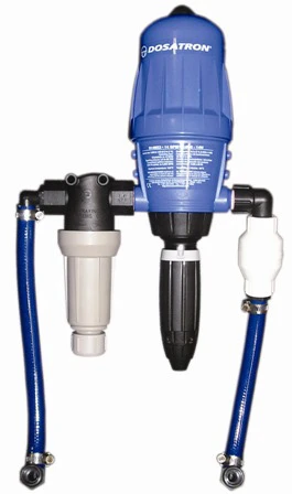 A DosaCart Quick Hook-up Kit, which greatly simplifies Dosatron fertilizer injector installation for DosaCart users, is available from Dosatron International. The easy-to-assemble kit includes everything necessary to connect a Dosatron D14-14GPM injector to the DosaCart including a 200 mesh filter, check valve, hoses and connections. This kit allows users to install their Dosatrons using only an adjustable wrench. It also features a low garden hose hook-up design to help balance the cart and avoid tip-over.