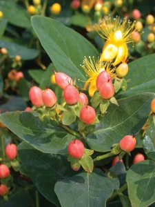 The Hypericum Hypearls Series from Green Leaf Plants features unique, perennial shrubs that are ideal for landscape or container use. In the garden, their bright yellow flowers and berries continue into the fall. In a container, they make attractive pots with showy berries for August sales. The vigorous, heat-loving plants have a well-branched habit, too.
