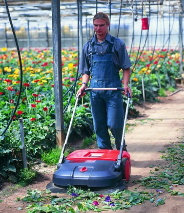Haaga Great Lakes offers six model types in its Sweeping Machines line. These people-powered, environmentally responsible sweeping machines, are lightweight and feature an ergonomic handle and grips to allow for sweeping without back pain. They can be manually pushed or pulled and the dual action, fully adjustable brushes will continuously pick up most debris from wet or dry leaves to rock, sand and dirt. Larger Haaga models feature a patented Turbo sweeping system which adds a third center brush for removing fine dust. The new Haaga 696 MasterSweep incorporates individual electric motors to operate all three brushes and assist with travel motion. These sweepers reduce cleaning time by 10 to 1 for both indoor and outdoor applications.