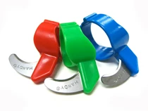 The Quick Release Ring Knife is a new line of plastic ring knives manufactured in the United States by Handy Twine Knife Co. The polycarbonate band is made with a split in the back. The same heat-treated steel blade is used in the plastic knife that is used in the Original Ring Knife. Available in small, medium and large.