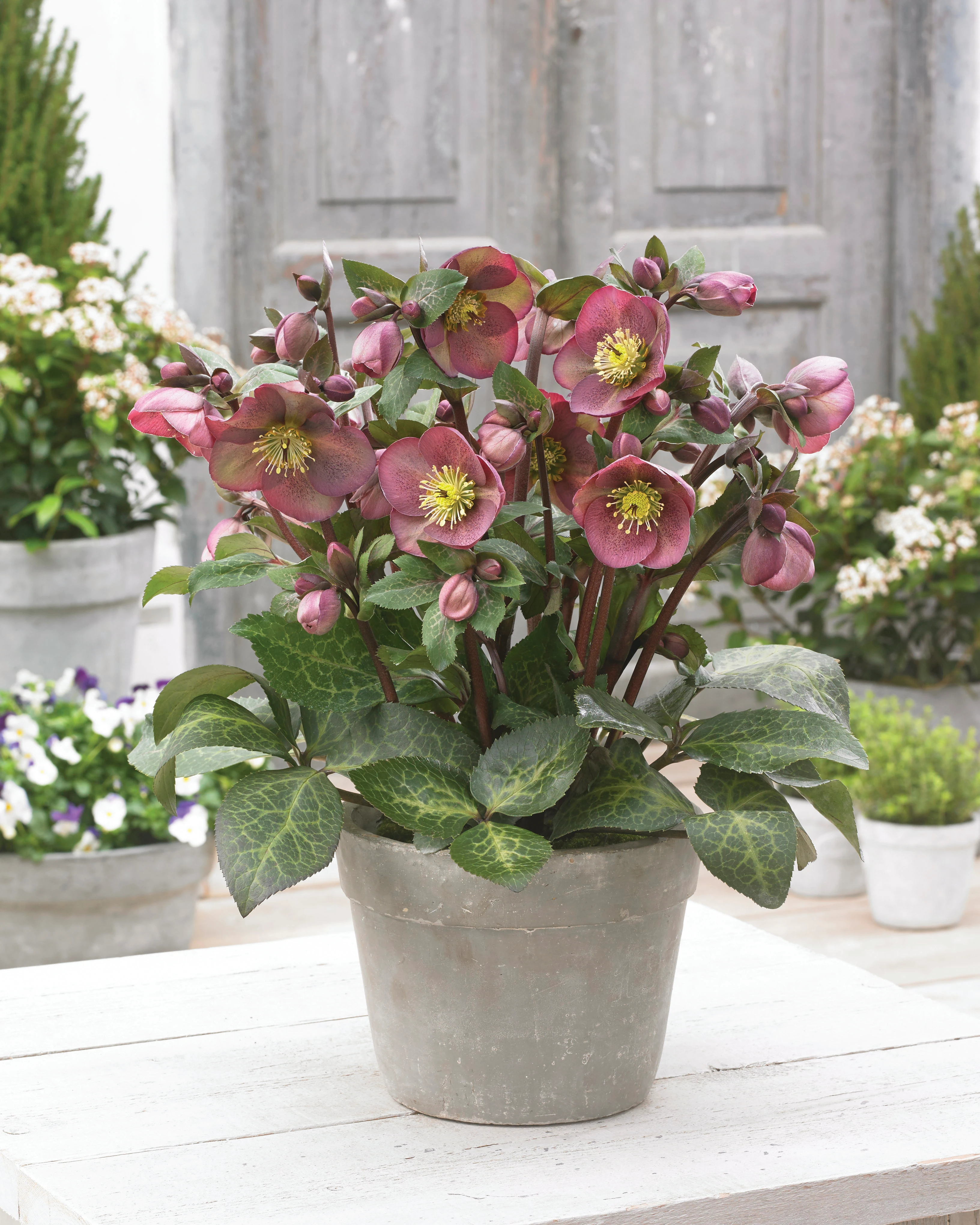 Pacific Plug & Liner’s Helleborus Frostkiss ‘Pippa’s Purple’ is a new Rodney Davey hybrid that is keeping up with the trends, Pippa’s flower color is a near match to Pantone 2015 Color of the Year, Marsala. Pippa’s flowers are accessorized with some deep burgundy speckles and has marbled foliage. Growth habit and bloom time will be similar to that of ‘Penny’s Pink’ and ‘Anna’s Red’. USDA Zones 5 to 8. Height: 24”x 24”.