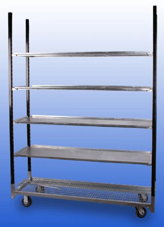 Heritage Greenhouse Products offers a range of greenhouse transport carts. The Standard Cart is 21½ inches by 56¾ inches and the Standard XL is 21½ inches by 66 13/16 inches. Both are available in custom colors and variable unit configuration. The Standard XL features Colson ball-bearing casters and wheels. A 22¼-inch by 53 1/8-inch European Cart is also available.