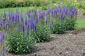 Veronica x ‘Spike’ was selected for clean foliage and extra long blue flowers that bloom in July. Flowers are held on 12-to-15-inch stems and last for three to four weeks. The basal foliage looks good all year long and is semi-evergreen. The plants prefer a well drained soil in full sun. Their hardiness iswithin zones 4-9.