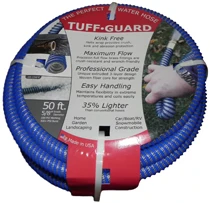 The Tuff-Guard hose was developed and is marketed by JGB Enterprises. The new product is made of a unique three-layer design woven fiber core for strength. It has been tested to last many times longer than anything currently on the market. Made of TPE, the hose is easily identifiable by its coiled helix design blue-colored exterior. It is made to withstand and function in temperatures ranging from minus 20 degrees to 150 degrees Fahrenheit. The working and burst pressures are 100 psi and 300 psi at 70 degrees Fahrenheit. The lightweight hose maintains flexibility at extreme temperatures.