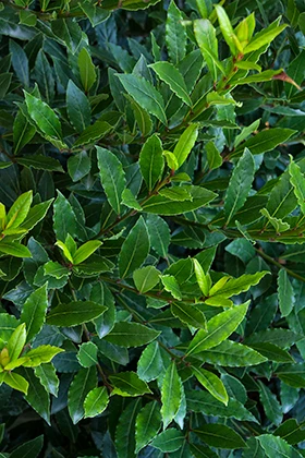 Native to the Mediterranean, this is a true compact Sweet Bay. The narrow foliage emerges chartreuse on red stems, and then becomes a rich, sage green. Little Ragu will top out at five to eight feet high and wide in 10 years. Its small size makes it ideal for planting closer to the house or in a container near the kitchen, handy for cooking. The dried leaves add a very distinctive flavor to stews and sauces. This evergreen shrub works well as a houseplant in colder climates, adding fragrance to the home all year. Prefers full sun to part shade. Little Ragu is a selection of Emerald Wave. USDA Zones 8 - 11