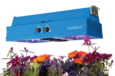 The LumiGrow ES from LumiGrow Inc. features LED emitters that cast a precise spectral range within 400-700 nanometers. It also features true deep red LEDs that match peak photosynthesis along with double the photosynthetically active radiation of other solid-state horticultural lights. LumiGrow lights use 60 percent less energy than 600-watt high pressure sodium lights. The cool-running lights eliminate the need for ballasts, reflectors, fans or other cooling systems. Independently adjustable red and blue knobs enable growers to fine-tune the lighting.