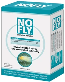 NOFLY from Natural Industries is formulated with spores of Paecilomyces fumosoroseus strain FE 9901. This microorganism is a naturally occurring fungus geographically widespread and a common pathogen of insect pests. NOFLY is intended for biological control of whitefly aphids and thrips, applied on all life stages of the pest: eggs, larvae and adults.