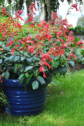 Cousin of the popular 'Wendy's Wish,' Salvia 'Embers Wish' covers with coral blooms from early spring to frost. In the yard, it forms balls of color with no pruning or deadheading. A portion of plant proceeds go to Make-A-Wish Australia.