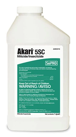 Akari Miticide/Insecticide demonstrates a unique, immediate “stop-feeding action” that not only stops further crop damage, but also inhibits oviposition. Akari controls a broad range of mites and insect pests including several species of spider, tarsonemid and eriophyid mites, mealybugs, whiteflies and psyllid. The immediate stop-feed prevents mites and insects from further eating away at your profits before they die out completely 4 to 7 days later. While Akari is active on all life stages, it is especially effective on the plant damaging larvae, nymph and adult stages. Akari provides long residual action of 21 - 28 days. Labeled for indoor and outdoor grown ornamentals and greenhouse vegetables, Akari is a powerful and convenient addition to every IPM program. As a contact solution, thorough spray coverage is essential to obtain desirable control.