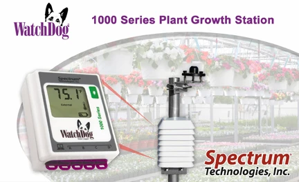 Spectrum Technologies offers the WatchDog 1000 series plant growth station. It displays temperature, relative humidity and photosynthetically active radiation (PAR) light levels. Daily light integral (DLI), degree day tracking and average day/night temperature level enhancements are added through SpecWare Software (sold separately). The WatchDog 1000 Series Loggers are available in eight models.