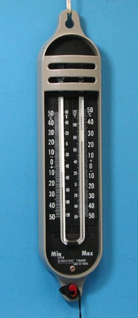 The Sper Scientific Min-Max Thermometer is available in two models. Model 736680 includes a magnetic float reset and features dual scales of -50/50 degree Celsius and -60/120 degree Fahrenheit. Model 736690 features a push-button reset and the same dual scales. Unlike liquid-filled thermometers whose liquid can fade over time, the Min-Max Thermometers are mercury filled allowing easy spot checking of temperature in a greenhouse or other temperature-sensitive environment.