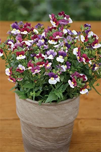 PlantHaven’s PenPals Nemesia Berry Summer Mix contains large, bi-color flowers in rich red, blue and white tones with bright yellow eyes, ideal for 6-inch pots, containers and baskets.