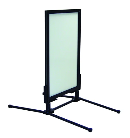 Walls + Forms offers a WindFrame with a spring base that enables sign flexing to prevent high winds from knocking over the display. This high endurance sign system is ideally suited for outdoor applications. It features front opening snap frame technology so graphics to be changed quickly, securely and with ease. The frame is double-sided, heavy-duty aluminum. The feet have rubber non-skid stoppers. The system is designed to hold materials from 28 inches by 44 inches to 26½ inches by 42½ inches.